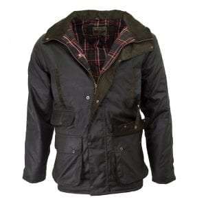 Outer fabric (shell) is made from 100% British Millerian waxed cotton, making this jacket waterproof and windproof. Other features include 5 front pockets; 2 hand warmer pockets, 2 front bellow pockets (with matching detail corduroy trim) and one smaller pocket above the front below pocket , 1-way heavy duty zip with studded flap enclosure, corduroy collar, 1 large inside pocket, Corduroy elbow pads and 100% nylon lining trim. The Hawthorn jacket also features a strap on the front hand warmer pocket to hold the front pocket flap open as a shooting feature.