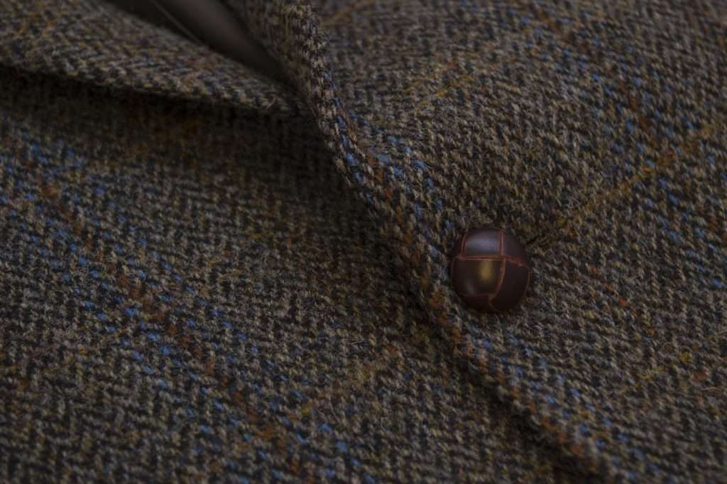 These world famous Harris Tweed jackets are superbly tailored, hard-wearing and warm. When purchasing one of these jackets you are guaranteed exceptional quality. By law Harris Tweed must come from the Outer Hebrides, and be hand woven from local wool. Supplied by Harris Tweed Scotland from 100% pure virgin wool, dyed, spun and finished in the Western Isles of Scotland. Expertly hand-woven by crofters in their own homes on the islands of Lewis, Harris, Uist and Barra. They are single breasted with two leather button fastening, and can be worn as a casual jacket or with a shirt and tie. Other specifications include side vents, two front pockets with flaps, Four interior pockets, three button leather cuff and Fully lined. Spare Button Leather buttons included. Dress with matching waistcoat for an extremely stylish look perfect for weddings and the races. All our tweeds are stamped with the authentic, official gold crossed orb mark of the Harris Tweed Authority.