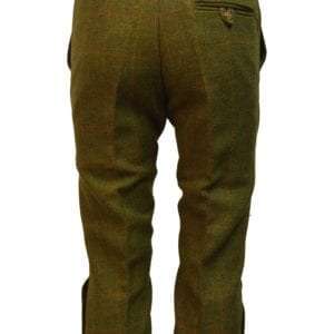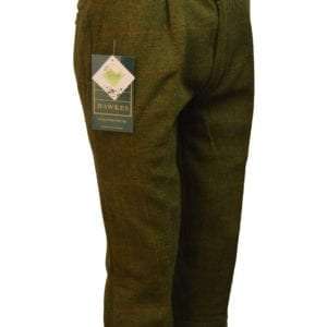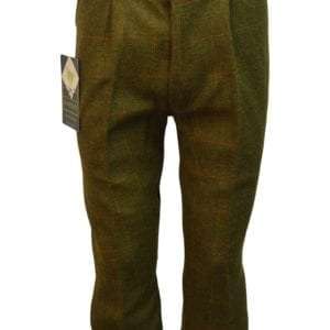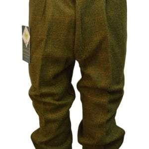 Internal linning is 100% Cotton, for extra warmth and comfort. Outer shell is made from 60% Wool, 25% Polyester, 11% Acrylic and 4% composed of other fibres, making this product of top quality fabric. Other features of this classic cut tweed breek are 2 side pockets, 1 back pocket with buttoned flap enclosure, strong brass front zip, velcro adjustable calf straps, dropped belt loops and elasticated grip waistband