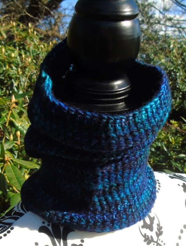 This is a pretty cowl, that is tall enough to be worn folded over for extra warmth or high to cover the lower part of your face, an extra cover over your face mask!
