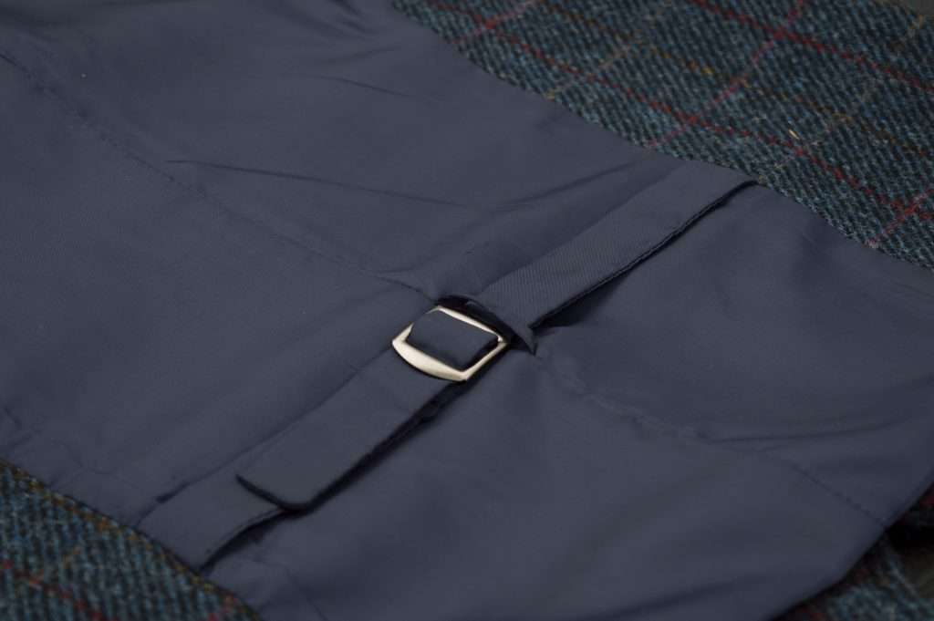 These world famous Harris Tweed Waistcoats are superbly tailored, hard wearing and warm. When purchasing one of these waistcoats you are guaranteed exceptional quality. By law Harris Tweed must come from the Outer Hebrides, and be hand woven from local wool. Supplied by Harris Tweed Scotland from 100% pure virgin wool, dyed, spun and finished in the Western Isles of Scotland. Hand-woven by crofters in their own homes on the islands of Lewis, Harris, Uist and Barra. Hand finished to the highest standard with four leather button fastening. Other specifications include two welter outer ticket pockets, Fully lined and Satin back lining with adjustable strap and buckle . Spare Leather Button included. Dress with matching Blazer for an extremely stylish look perfect for weddings and the races. All our tweeds are stamped with the authentic, official gold crossed orb mark of the Harris Tweed Authority.