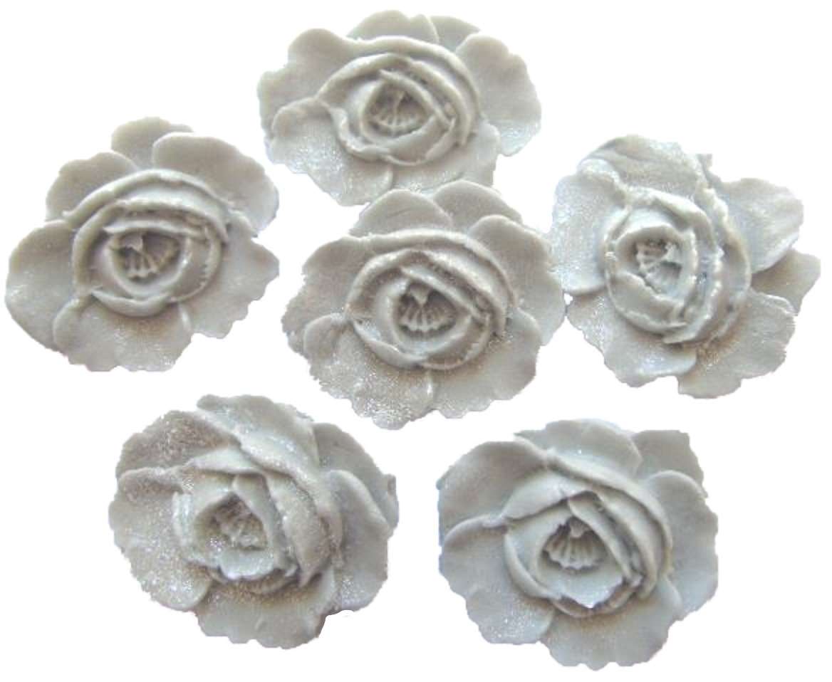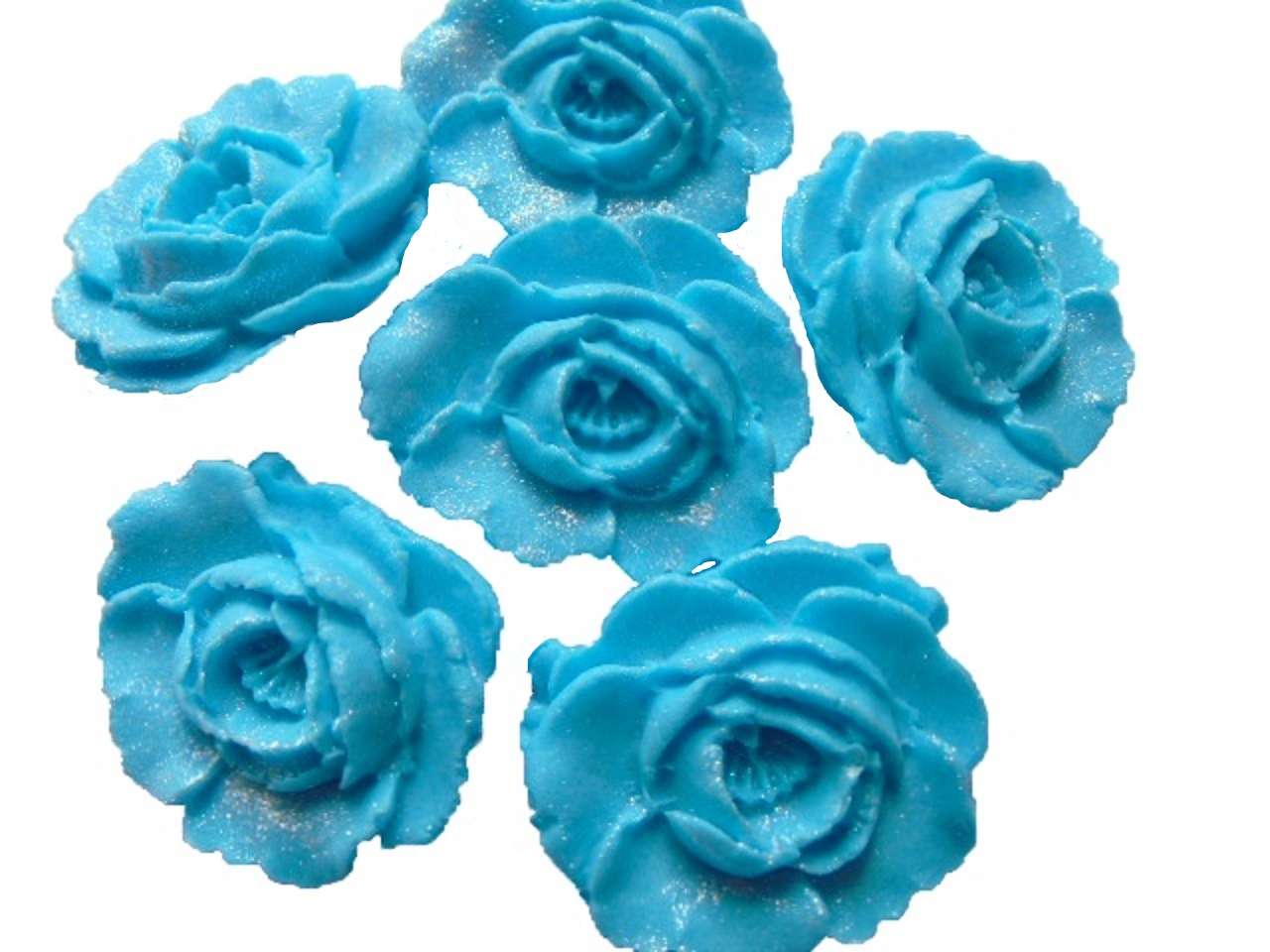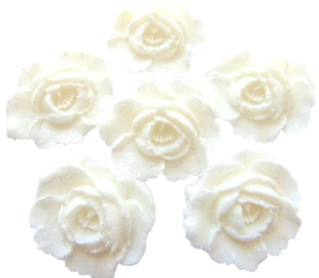 6 Large Glittered Roses Cake Decorations