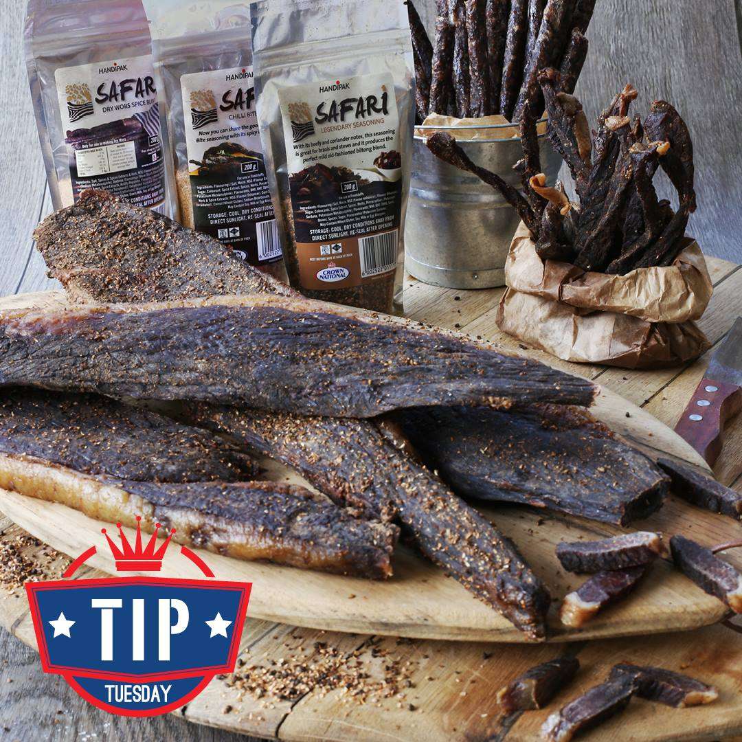 ![Safari Biltong Seasoning 200g 7 safari biltong v2 <b><u>Crown National Spices- Safari Biltong Seasoning 200g </u></b> <strong>Authentic Southern African Spices and Seasonings imported from the most southern tip of the African continent. These spices and seasonings have a proud heritage that dates back to 1912. A unique taste and finest level of quality in every pack. </strong> Size: 200g <b><u>Description: </u></b> •This Safari seasoning is ideal to use to make your own mild perfect Biltong (Almost like dried beef jerky) •This delicious legendary seasoning has beefy and coriander notes. •The seasoning is great for BBQ's or in Afrikaans a Braai, and for stews. <b><u>Ingredients:</u></b> Flavouring [(<b>Celery</b>)Maize Flour, Maize Meal, Colourants, MSG (Flavour Enhancer), Hydrogenated Vegetable Fat (Palm Fruit), Anticaking Agent, Acidity Regulator, Spice Extract (Antioxidant- TBHQ)], Salt, Spices, Sugar, Preservative (Potassium Sorbate) <b><u>Allergens: </u>Celery</b> Produced in a factory where Cow's Milk, Egg, Mustard, Soy, Wheat Gluten are used.](https://www.thecountrysidestore.co.uk/wp-content/uploads/2021/04/safari-biltong-v2-300x300.jpg)