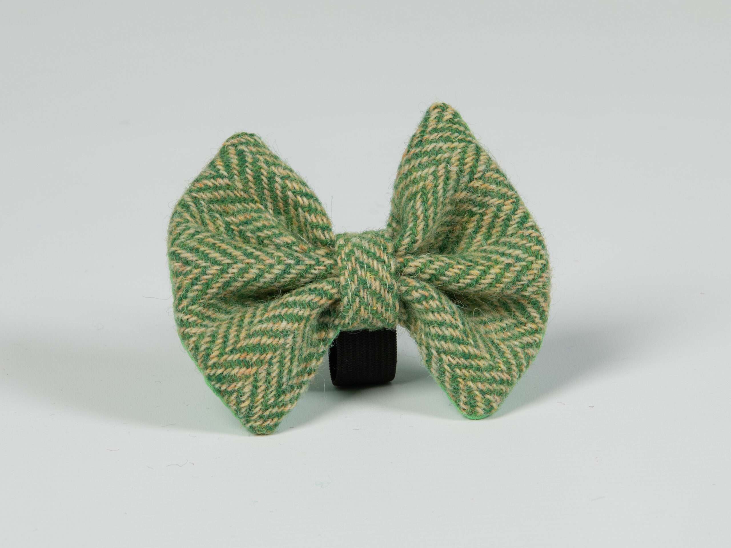 Collared Creatures Green Herringbone Luxury Harris Tweed Dog Bow Tie - The Countryside Store
