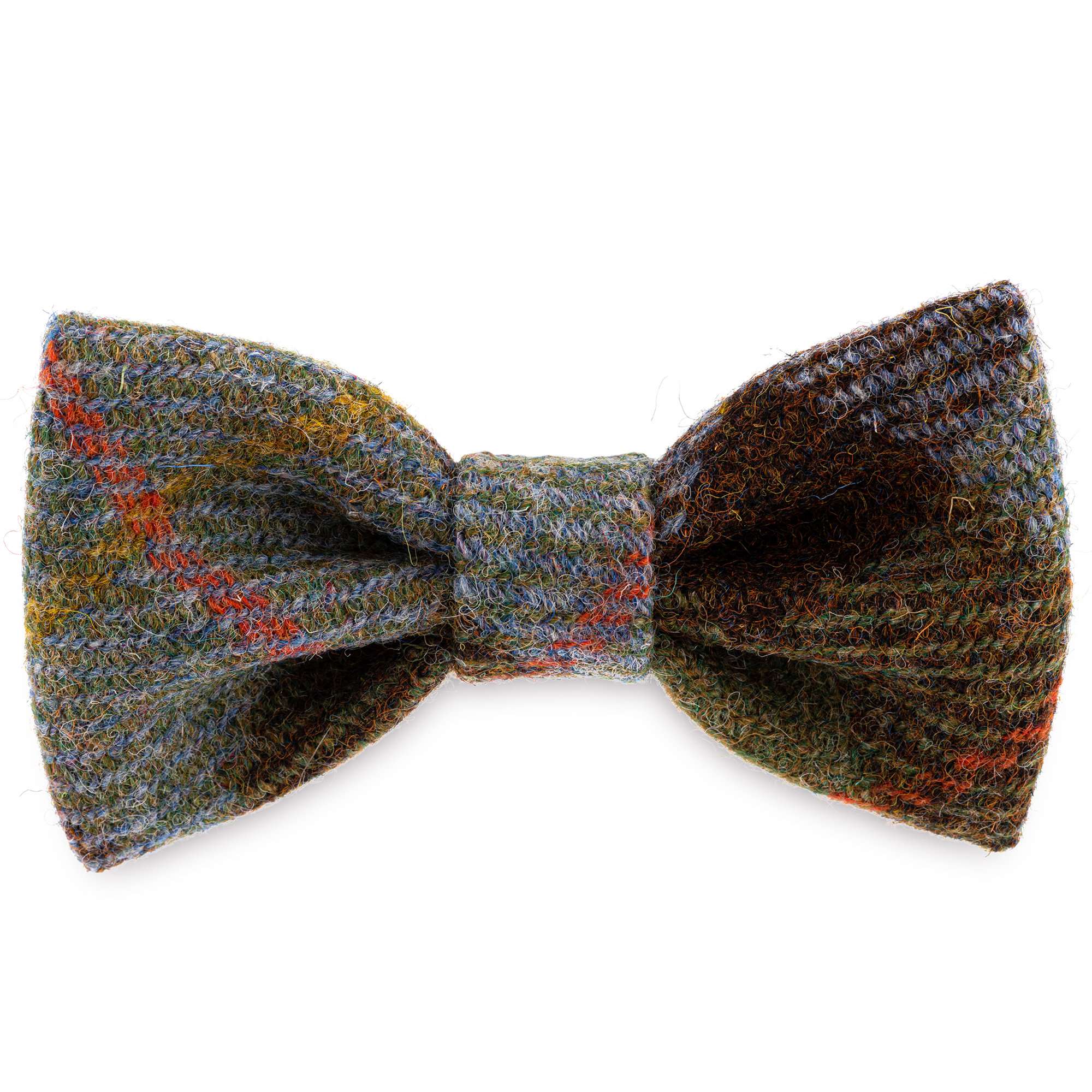A stunning check made of greens, browns, blues with a hint of brighter oranges and yellows. This iconic Harris Tweed looks so cute as a bow tie.