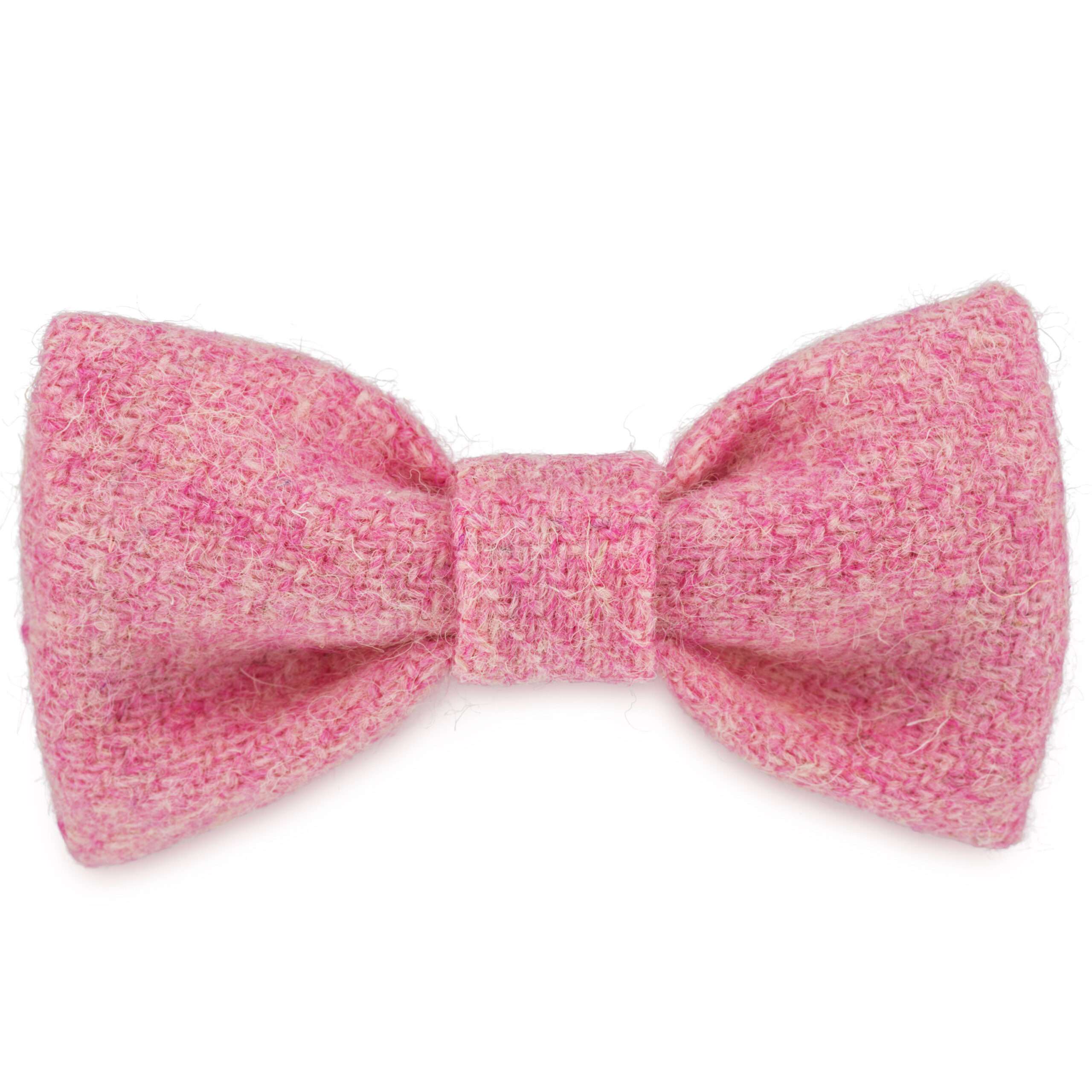 A great Harris Tweed to make a bow tie out of. Our team of crafts people love this fabric. It is hard to say what is so perfect about Rosie’s Pink. It is soft but not childlike, strong but not harsh. This bow tie is fantastic with many of our pink colourways that are selected for our collars.