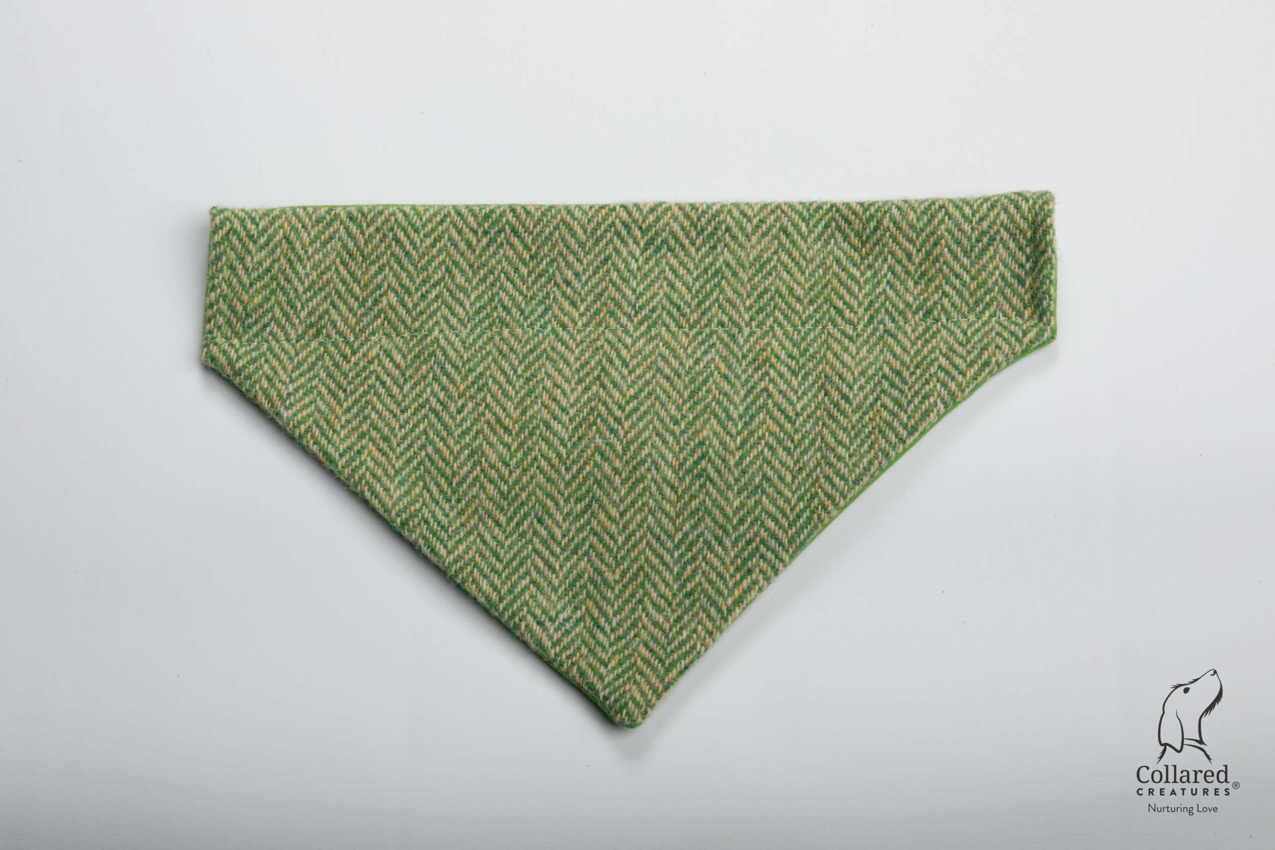 Collared Creatures Green Herringbone Harris Tweed Luxury Dog Collar Handmade in Yorkshire
