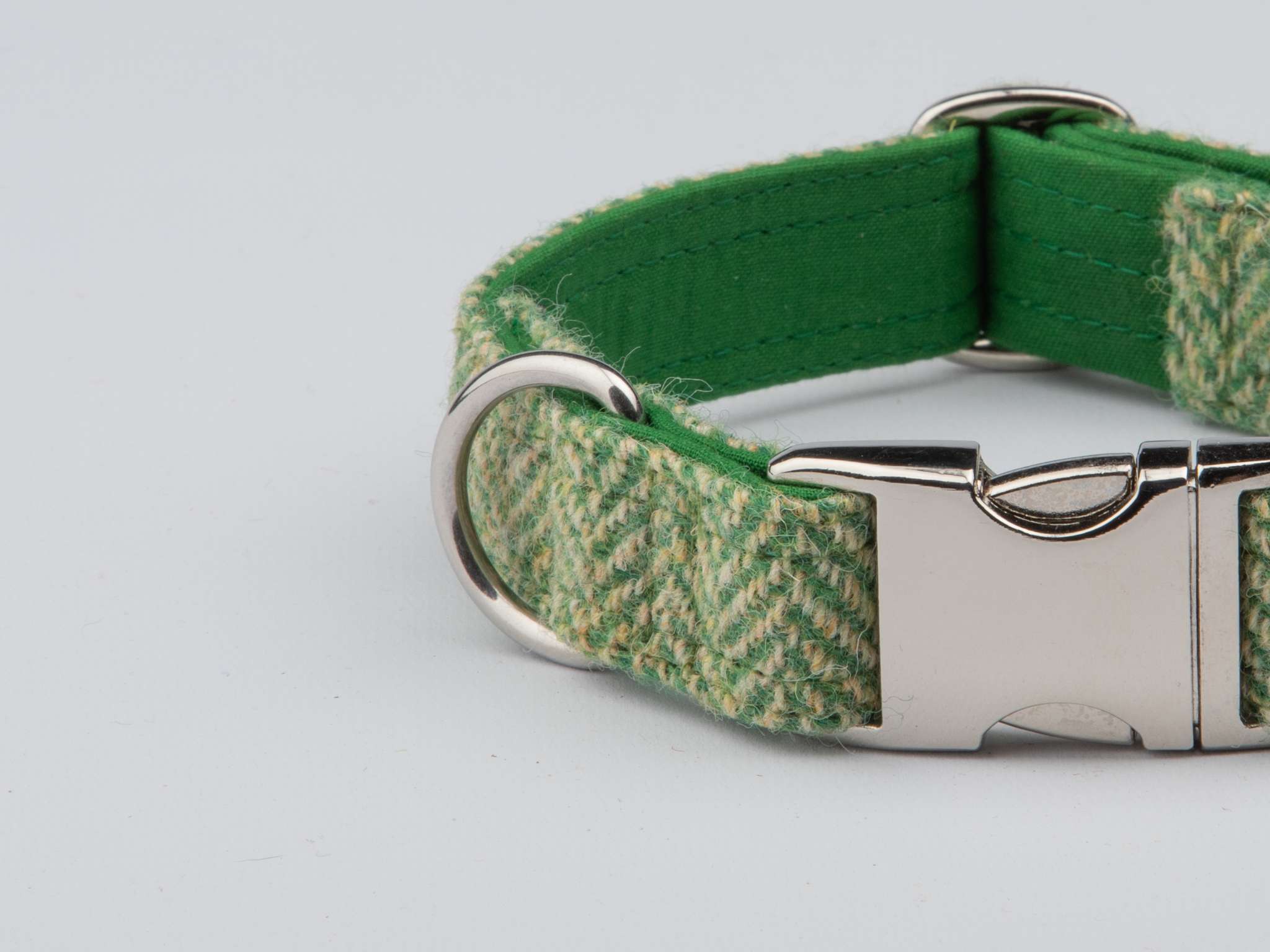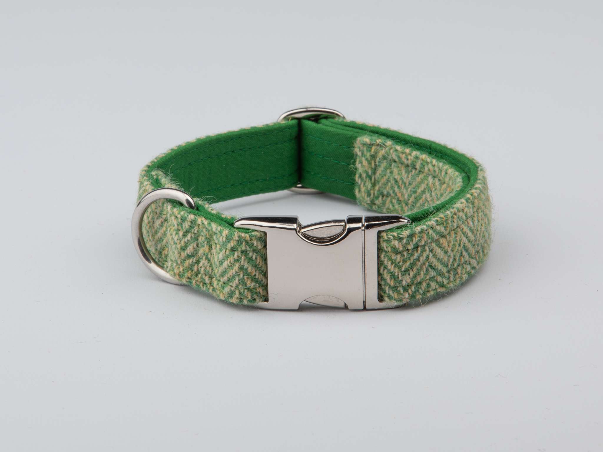 Collared Creatures Handmade Green Herringbone Luxury Harris Tweed Dog Collar, With Free Engraving - The Countryside Store