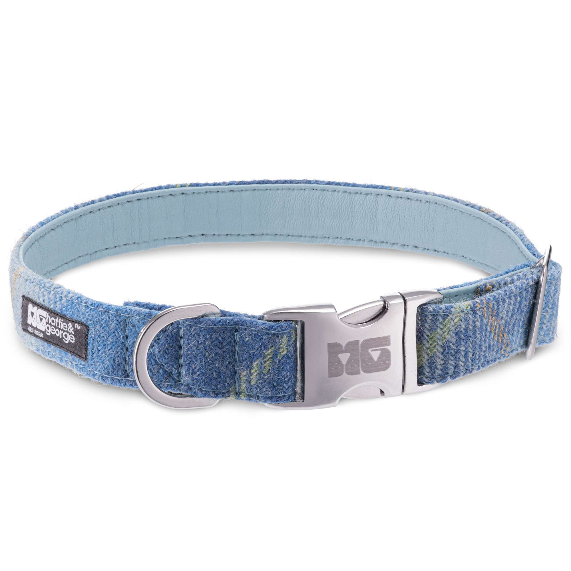 Stanley’s Sky Dog Collar Handcrafted in Harris Tweed with Baby Blue Leather Lining