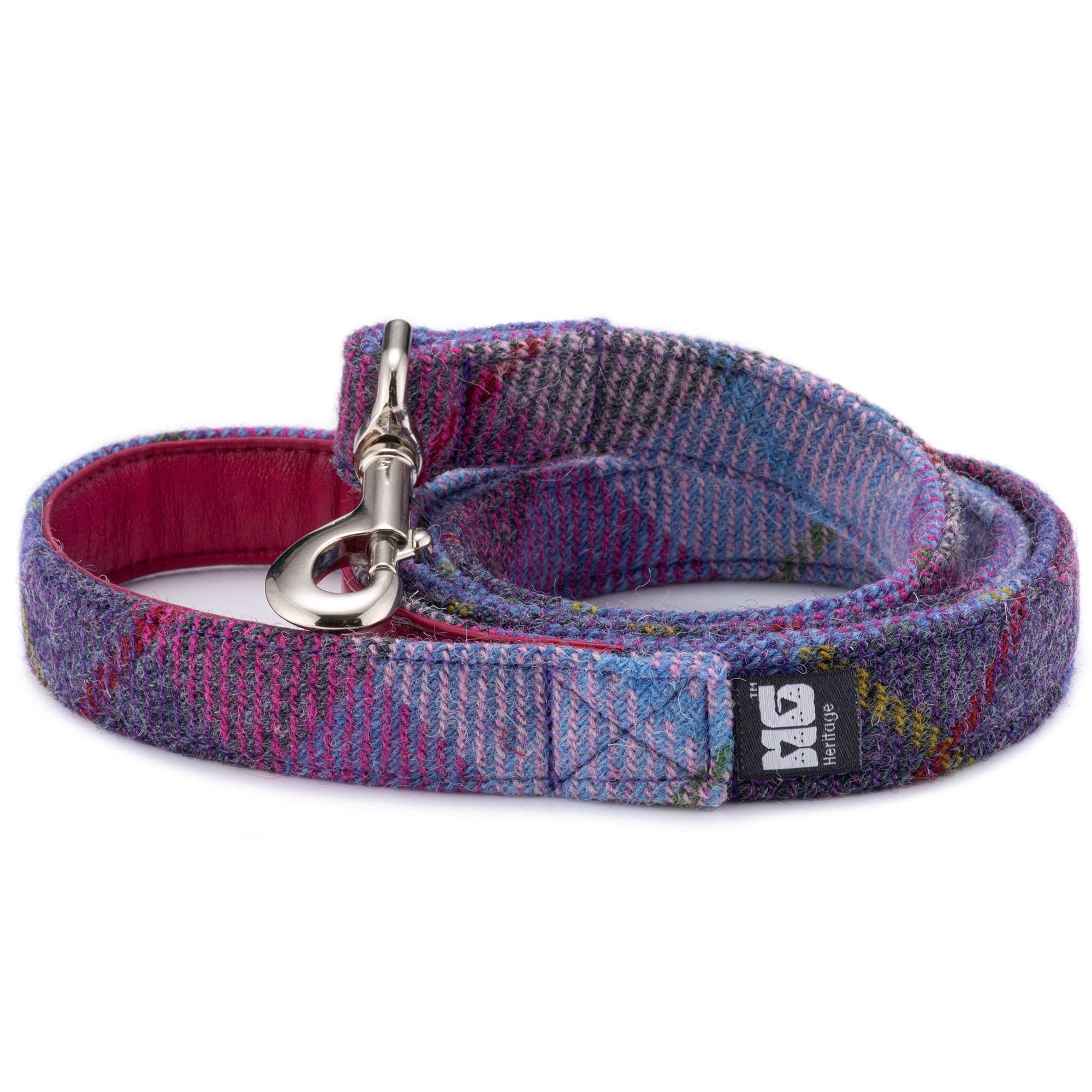 Daisy Heather Dog Lead Handcrafted in Harris Tweed with Magenta Leather Lining